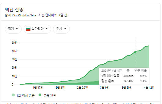 불가리아의 4/13 기준 신규 확진자는 2944명 입니다. 7일 평균 3천명/일 넘습니다.