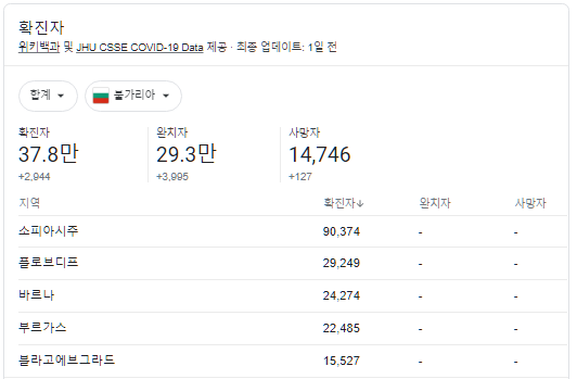 정작 불가리스를 많이 먹는 불가리아의 코로나 감염 현황은 어떨까요?