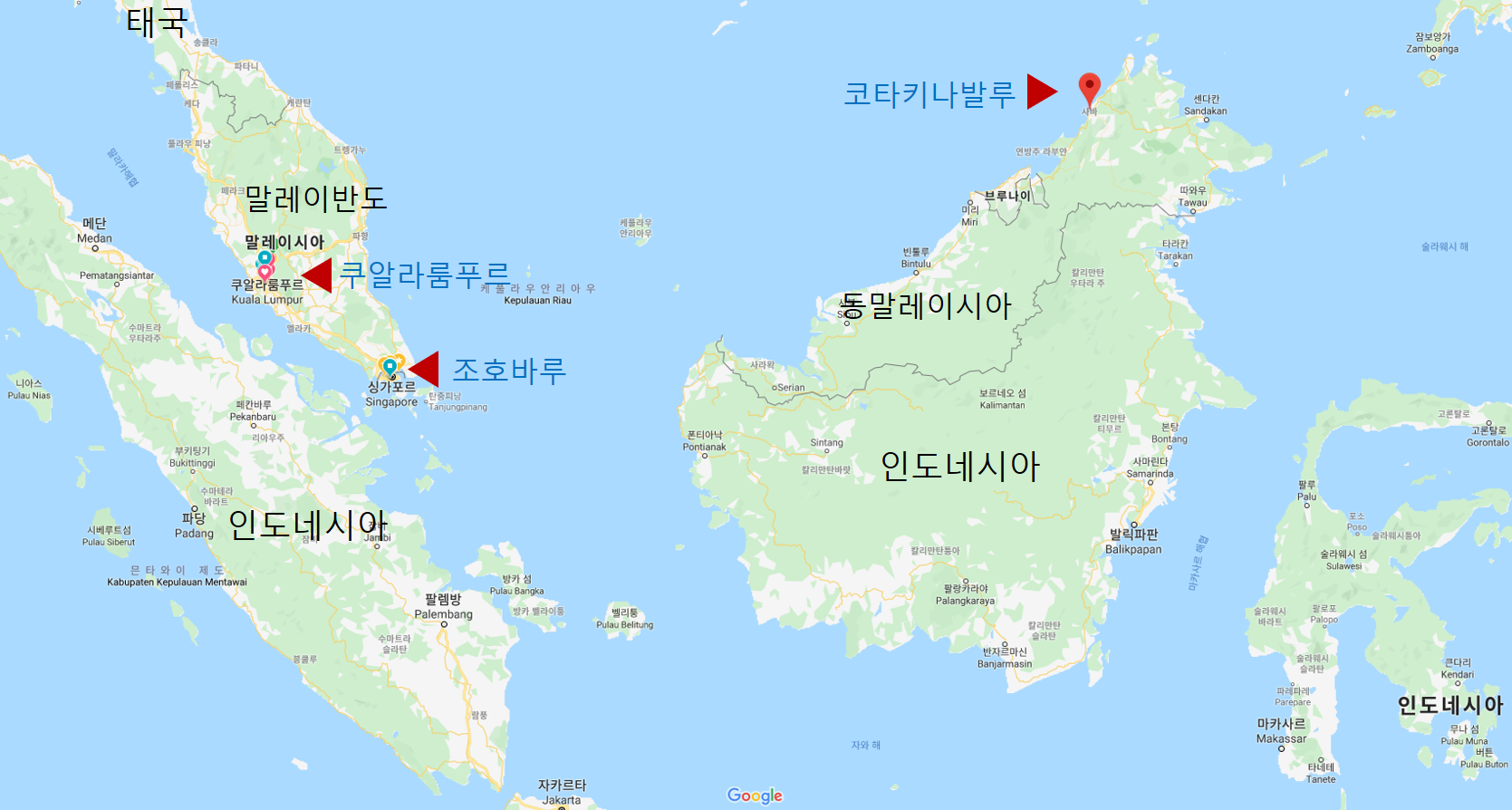 기본적으로 말레이반도 + 동말레이시아(보르네오섬)로 이루어져 있습니다. 보르네오섬은 아마 가구이름으로도 좀 익숙하실텐데요. 인도네시아와 브루나이와 함께 말레이시아가 함께 국경을 같이한 섬으로 밀림지역에 나무나 고무 제조 등 으로 유명합니다. 그리고 우리에게 익숙한 코타키나발루(KK)가 있는 지역이지요. (한국분들은 아마 코타키나발루가 훨씬 더 익숙하실것 같아요ㅎ)