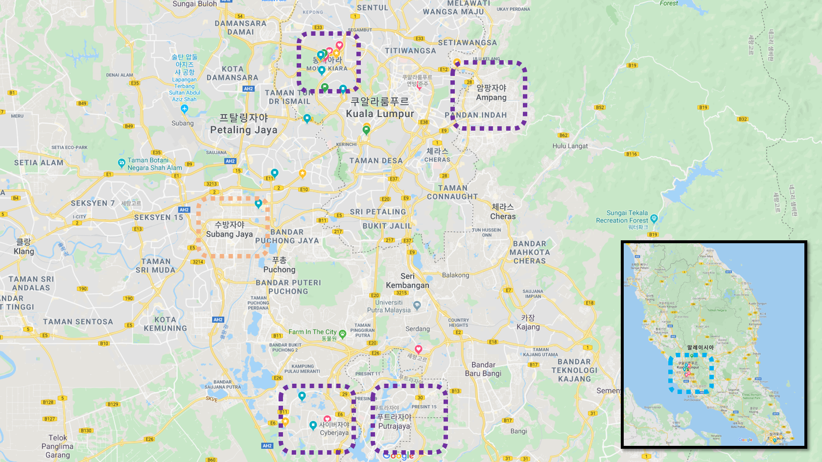 그리고 쿠알라룸프 지역에서도 거주하시는 지역이 또 나눠지는데요.